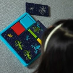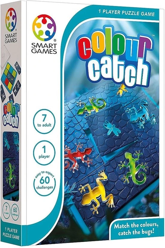 Help de dieren hun avondmaal te vangen. Plaats alle puzzelstukken op het spelbord, zodat de kikkers en salamanders dezelfde kleur krijgen als in de opdracht. Maar kijk uit! De dieren zijn transparant en veranderen van kleur, naargelang de ondergrond waarop ze geplaatst worden. Een kleurrijke Smartgame met 60 opdrachten voor kinderen vanaf 7 jaar.