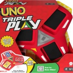 Het immens populaire UNO Kaartspel is nu drie keer leuker met het UNO Triple Play spel! Met dit spel heb je supersnel speelplezier voor iedereen. Kinderen van klein tot groot en ook volwassenen, iedereen speelt graag UNO. Makkelijk om te leren, maar moeilijk om mee te stoppen. Een fantastisch spel voor een gezellig avondje met het hele gezin. En vergeet niet UNO te roepen als je nog één kaart over hebt!