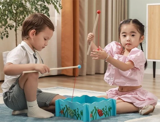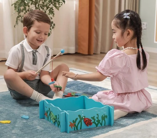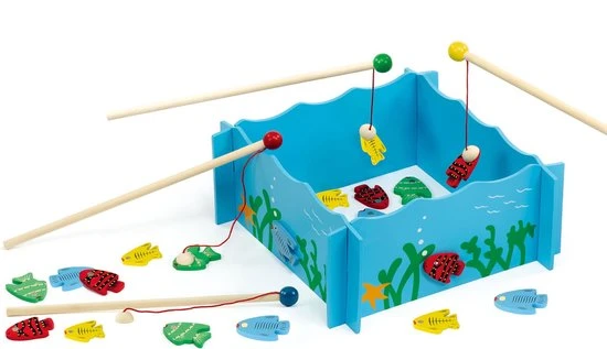 Een decoratief visspel voor de jonge vissers onder ons. Het spel kan gespeeld worden met maximaal vier spelers en in de vijver zitten 20 verschillende vissen. Met de vier magnetische hengels kun je de vissen vangen.