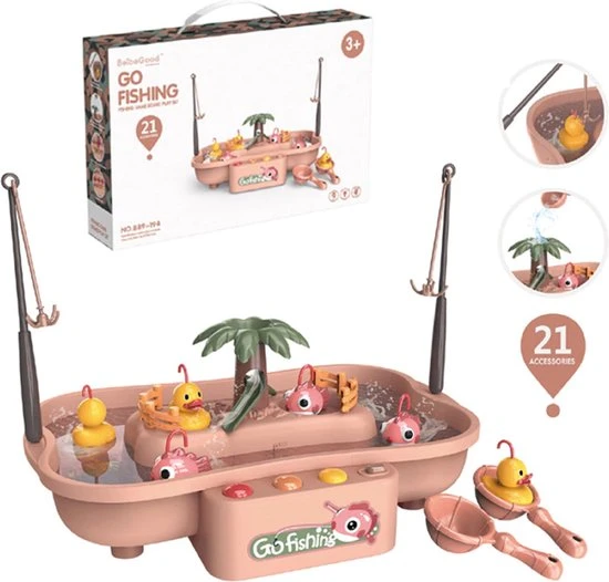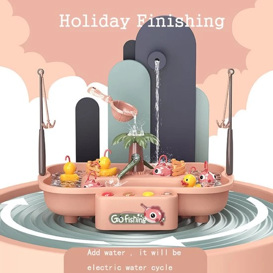 2. muziek vissen speelgoed: zet de schakelaar, zal de muziek automatisch, en het water op het bord zal beginnen te circuleren. Wanneer u zet vis en eenden in, ze zal bewegen met het water.