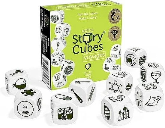 Met de Rory’s Story Cubes Voyages creëer je oneindig veel verhalen vol heldhaftige avonturen. De dobbelstenen bevatten afbeeldingen die te maken hebben met reizen en avontuur. Rol de dobbelstenen en verzin verhalen aan de hand van de negen zichtbare afbeeldingen. Begin je verhaal met ‘In een land hier ver vandaan..’ en start je avontuurlijke reis.
